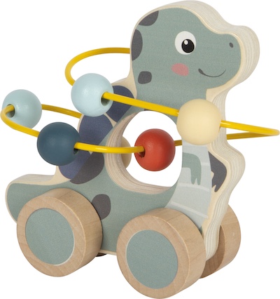 - Dinosaure à pousser avec circuit de motricité intégré en bois certifié.