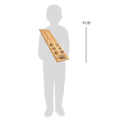 - Cette boîte de haute qualité en bambou avec des creux à l’intérieur contient l’ancien mais intemporellement excitant jeu de stratégie et de logique « Kalaha ».