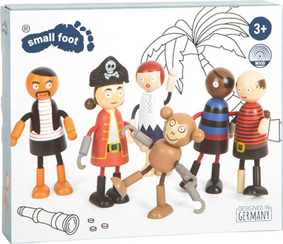 • Lot de 6 poupées : composé d’un capitaine pirate, de quatre membres d’équipage et d’un petit singe