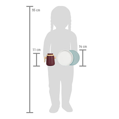 - Y compris tasses, assiettes, cuillères à café, sucrier, pot à lait et aliments ludiques (crème à café, sachets de thé, myrtilles, muffins, pièces boissons). La crème et les myrtilles ont la fonction magnétique.