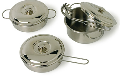 - 2 marmites et 1 poêle avec leurs couvercles & 5 ustensiles de cuisine pour créer des délices.